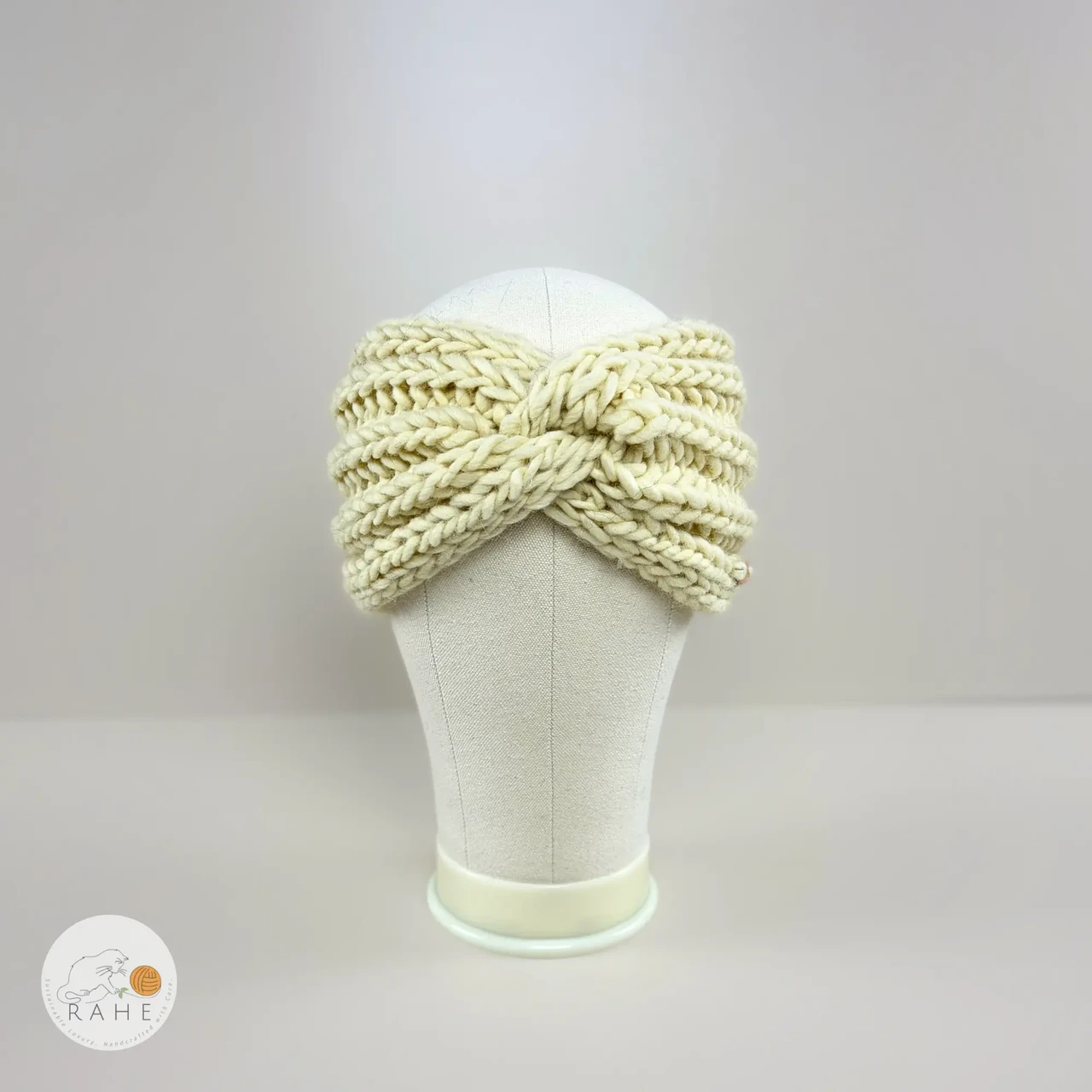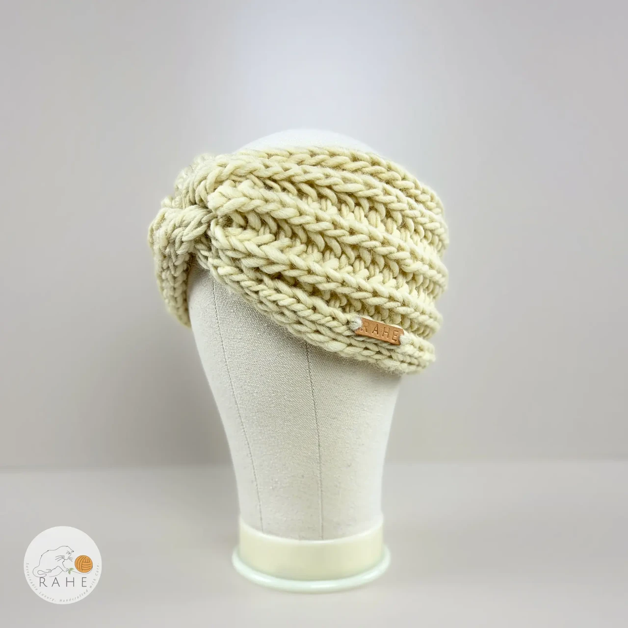 Soft Chunky Hand-Knit Wool Headband, Ivory White Ear Warmer