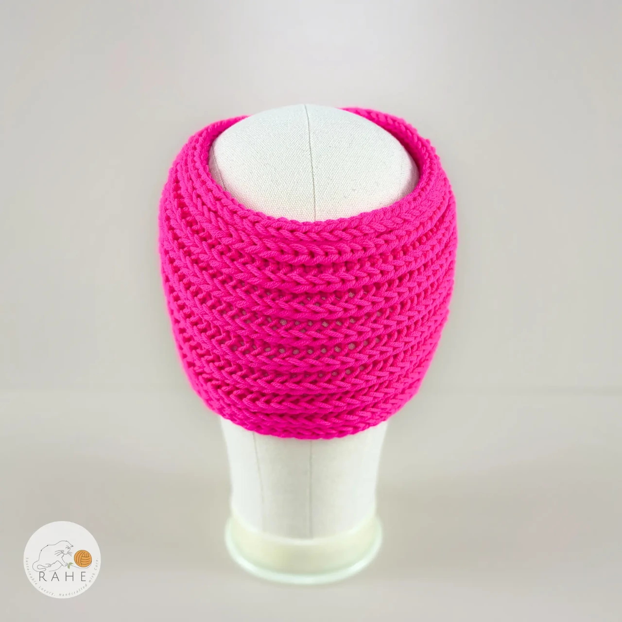 Stay warm and stylish with this hand-knitted soft merino wool headband in neon pink. Knitted using fisherman's ribbing and designed as a cozy winter ear warmer, this luxurious accessory combines comfort and elegance in one. The stretchy ribbed knit ensures a perfect fit, while the timeless design makes it easy to style with any outfit.