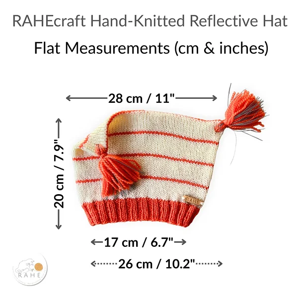Keep your little one warm and stylish with this handmade reflective winter beanie and scarf set, knitted in a soft salmon pink and natural white (off-white) wool blend. Each piece is carefully hand-knitted and features a reflective detail for added safety on darker autumn-winter days.