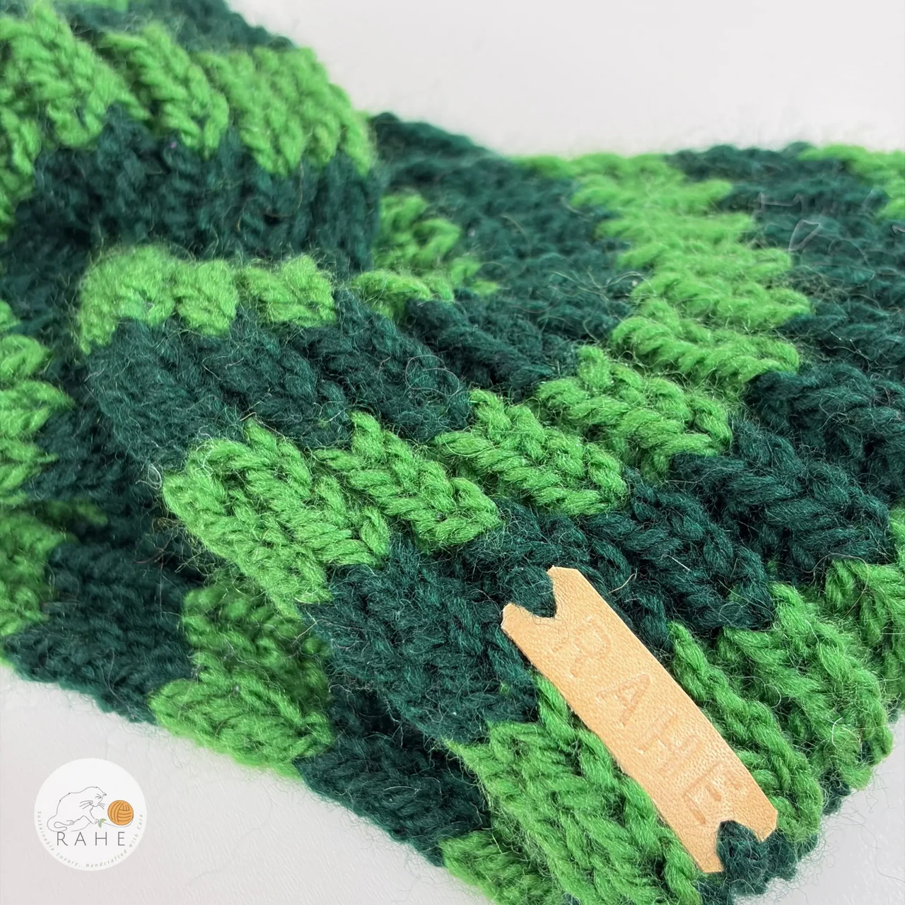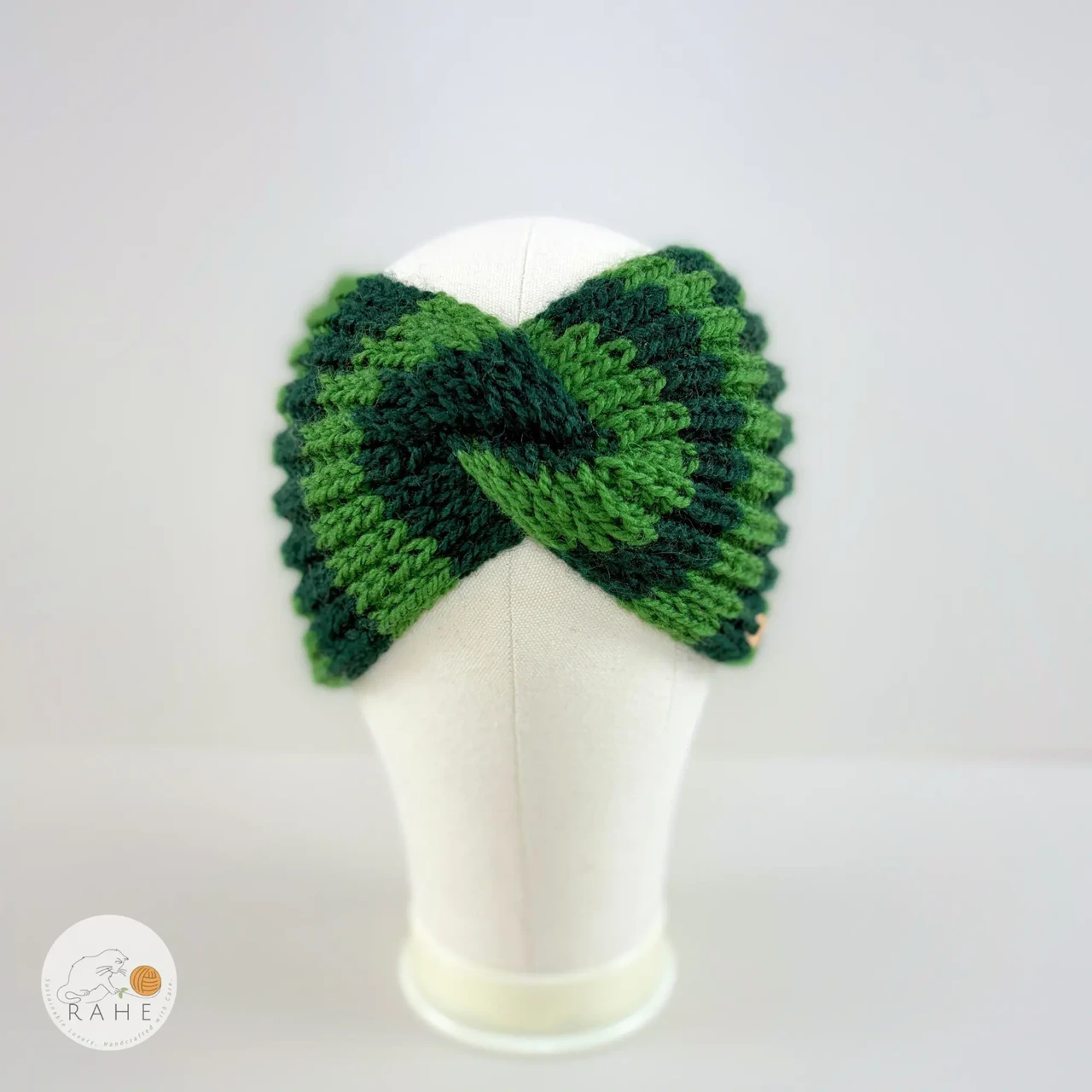 A deep yet natural colour palette inspired by forest shadows, evergreen foliage and quiet Nordic woodlands. This green and dark green striped hand-knitted headband feels grounded and timeless, adding richness and depth while remaining calm and easy to wear. The harmonious, nature-based tones pair beautifully with neutral wardrobes, bringing a sense of warmth, softness and understated forest elegance to your look.