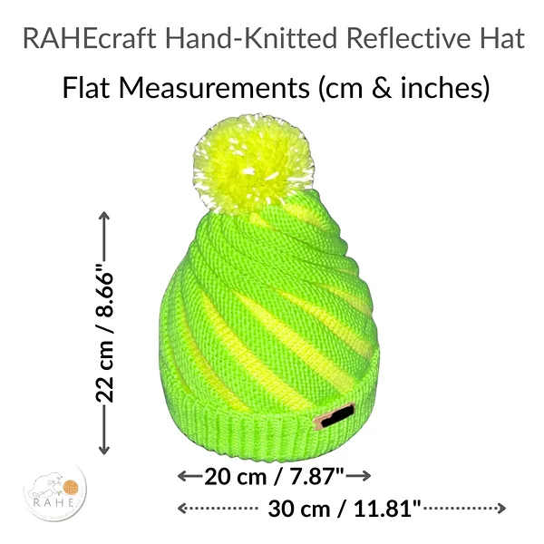 Kids' reflective winter hat, hand-knitted, neon green & yellow