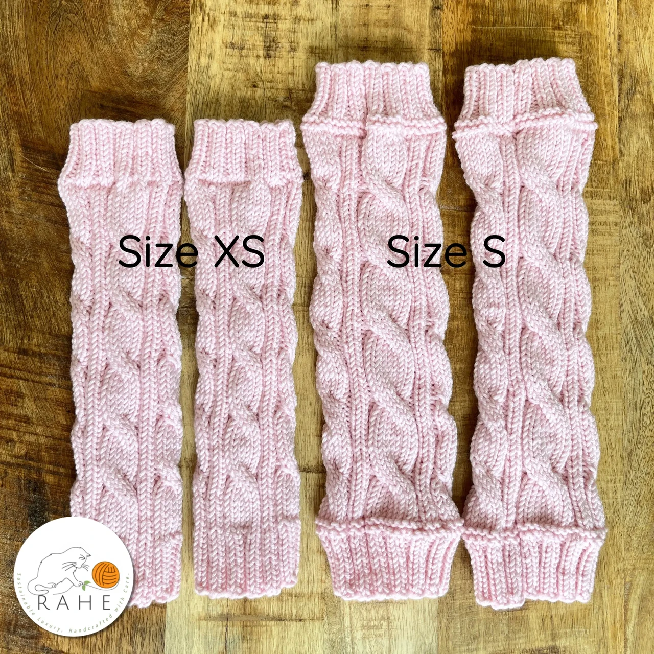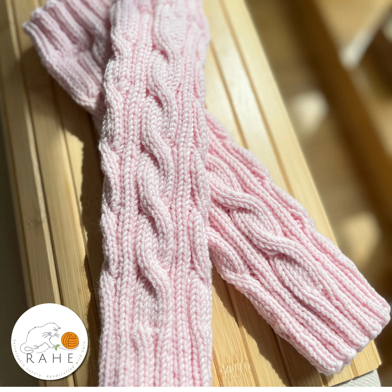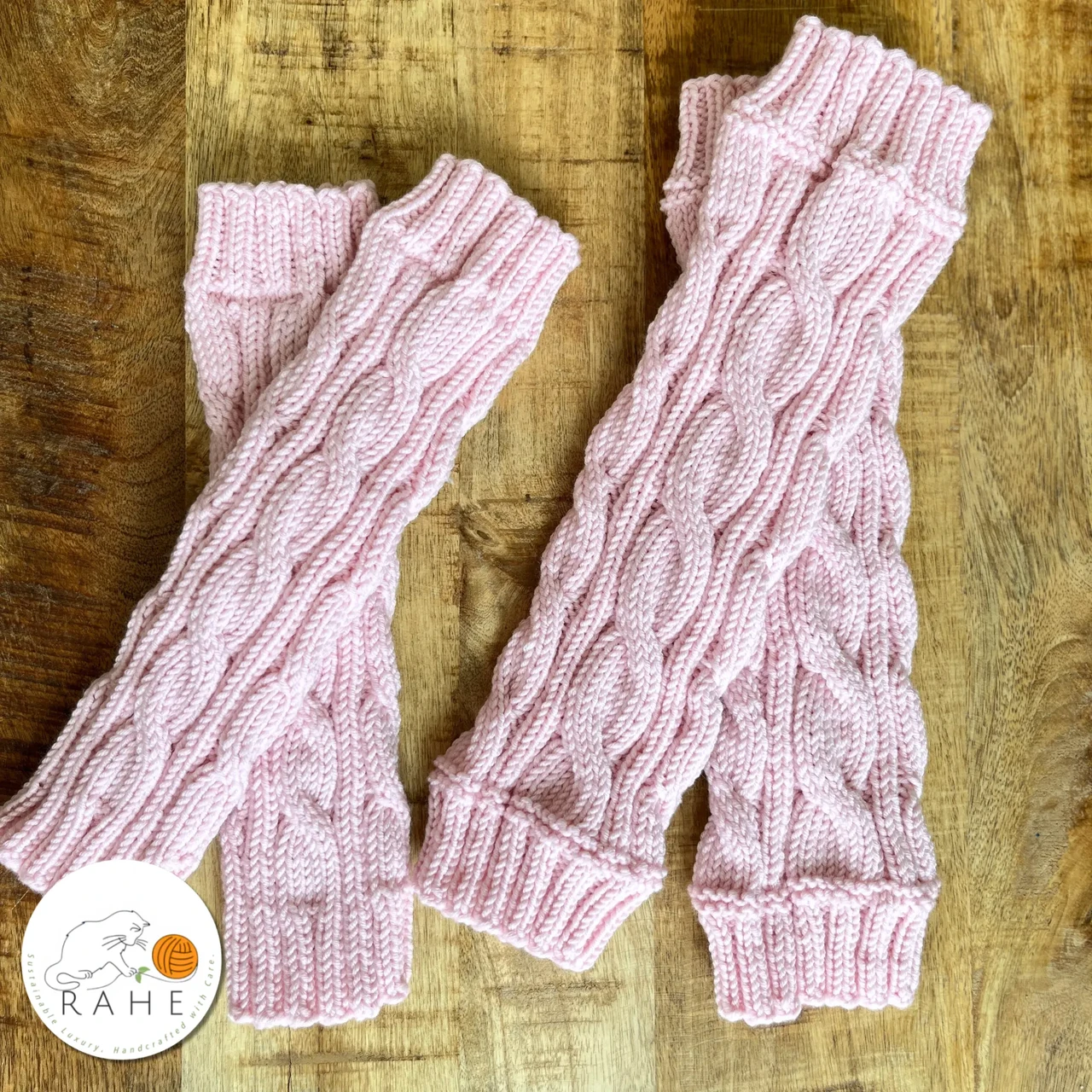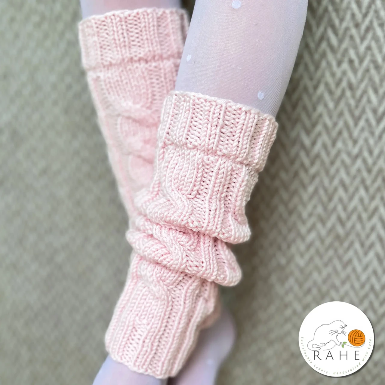 Käsitsi kootud meriinovillased palmikutega säärised – pehmed kahvaturoosad, lastele, teismelistele, väikest kasvu täiskasvanutele