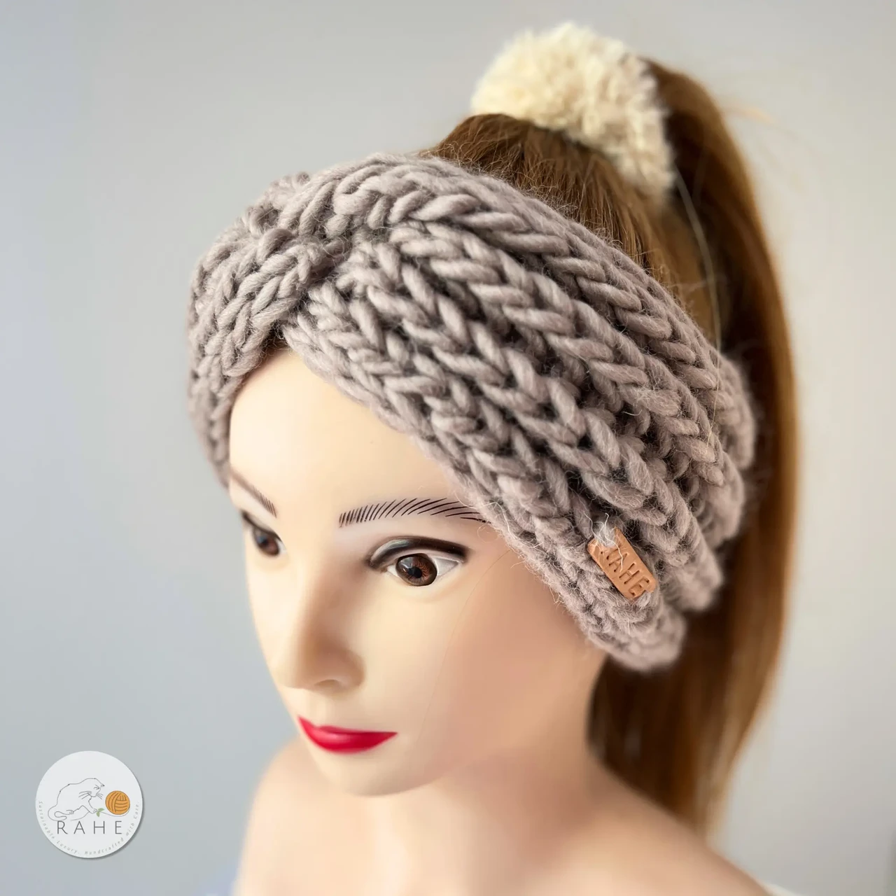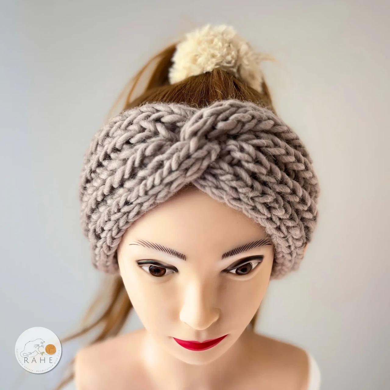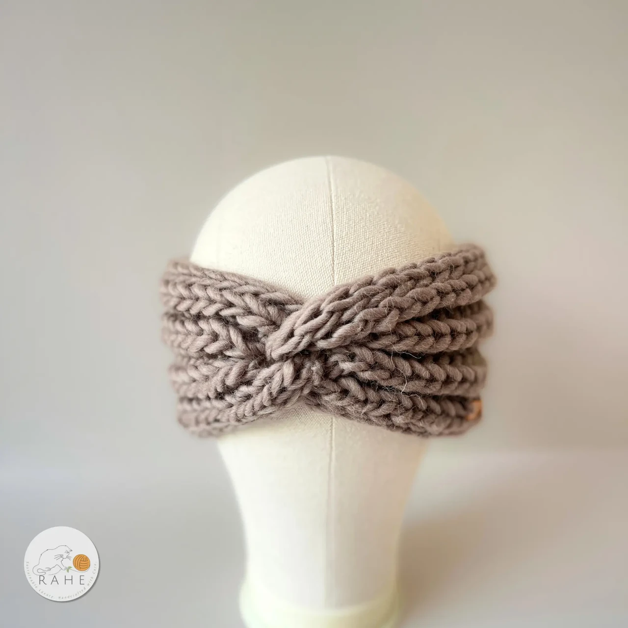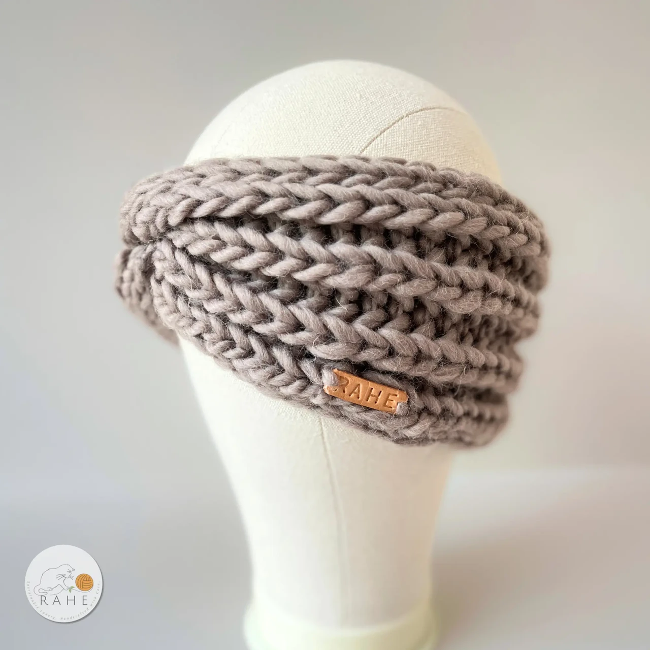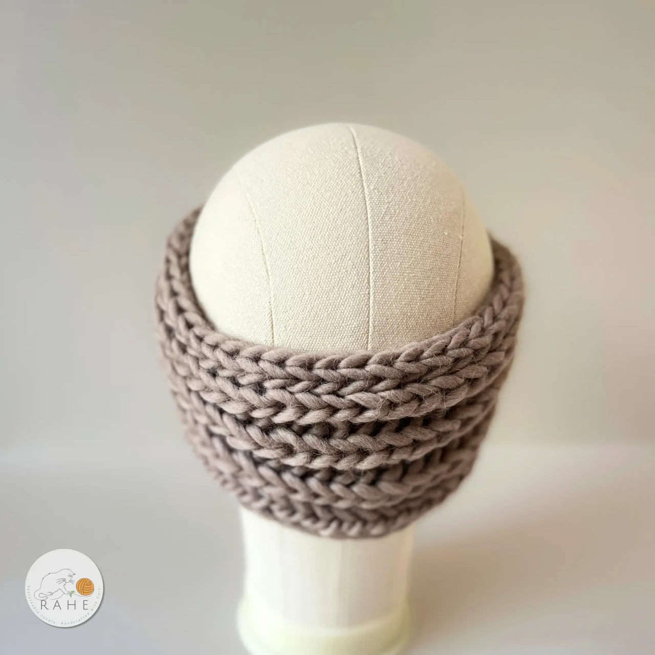Paks villane käsitöö peapael naistele - hallikaspruun