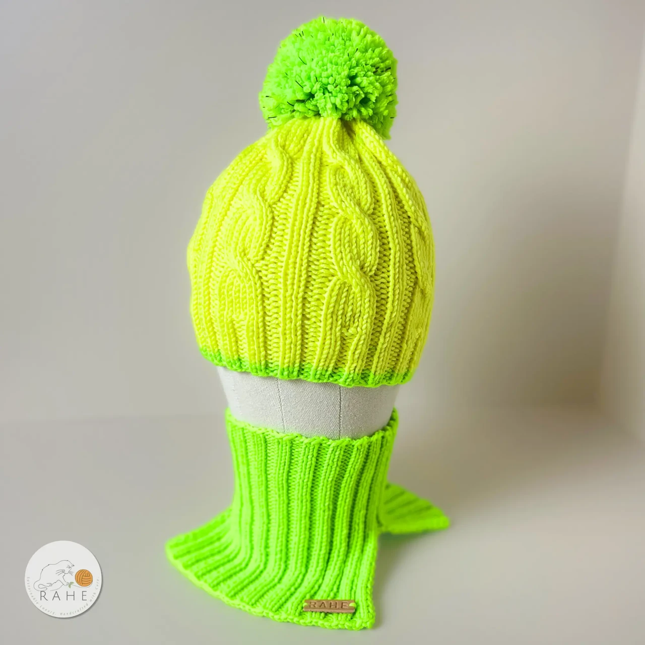 Käsitsi kootud meriino helkurmüts – neoonkollane laste talvemüts