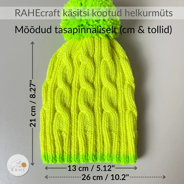 Talvemütsidel on klassikaline palmikumuster, mis toimib ka mõnusa soonikuna – tagades veniva ja hästi peas püsiva istuvuse. Neoonroheline helkurtutt lisab nähtavust pimedamatel õhtutel – ideaalne valik kooliteele, suusareisile või õhtustele mänguhetkedele.
