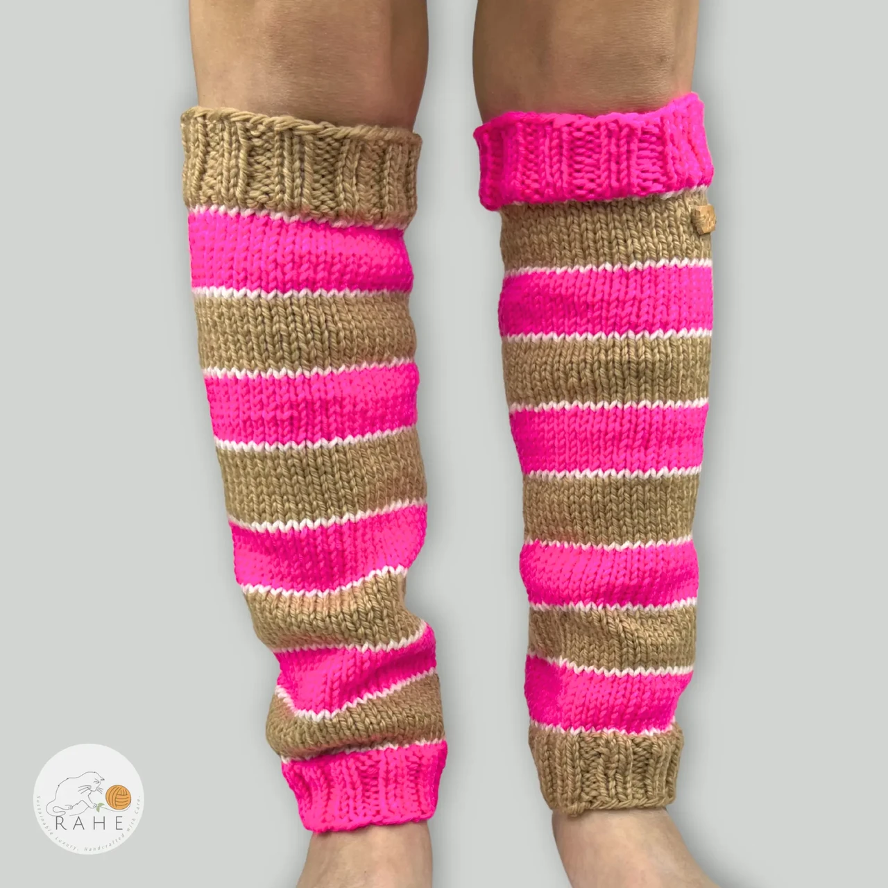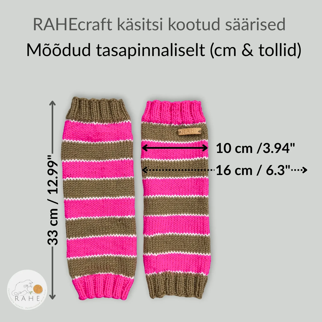 Lisa lapse riietusele värvi ja soojust käsitsi kootud triibuliste sääristega! 100% Itaalia meriinovillast valmistatud pehmed säärised on ideaalsed sügis- ja talvehooajaks. Lõbusad beežid, neoonroosad laiad triibud ja nende vahel valged peened triibud annavad neile omanäolise ja mängulise ilme. Sobivad suurepäraselt lastele, kes soovivad end tunda samaaegselt soojalt ja stiilselt. Täiuslik valik kingituseks või eriliseks täienduseks lapse garderoobi! Osta kohe ja too külmadesse sügise ja talve päevadesse soojust ja sära.